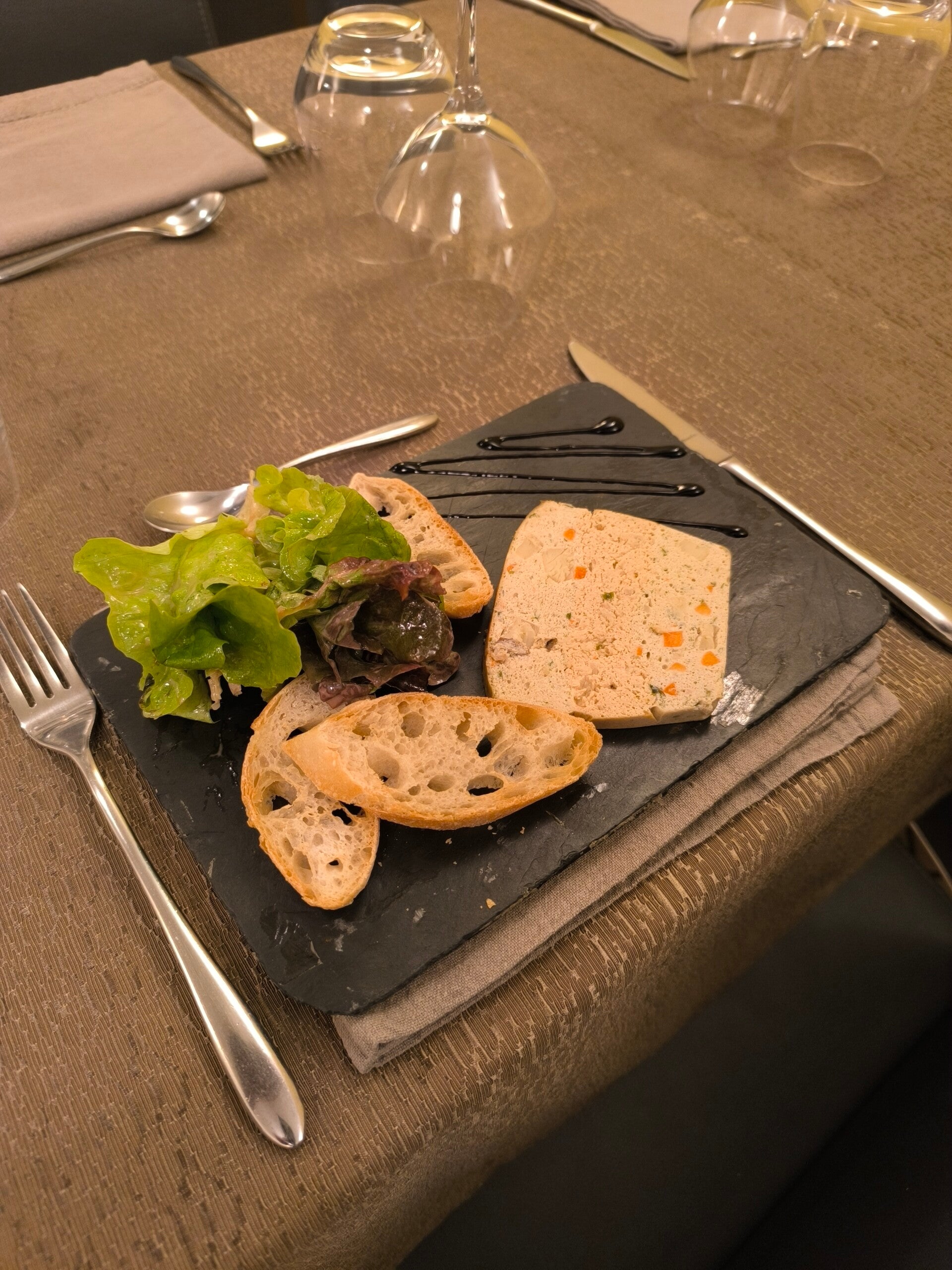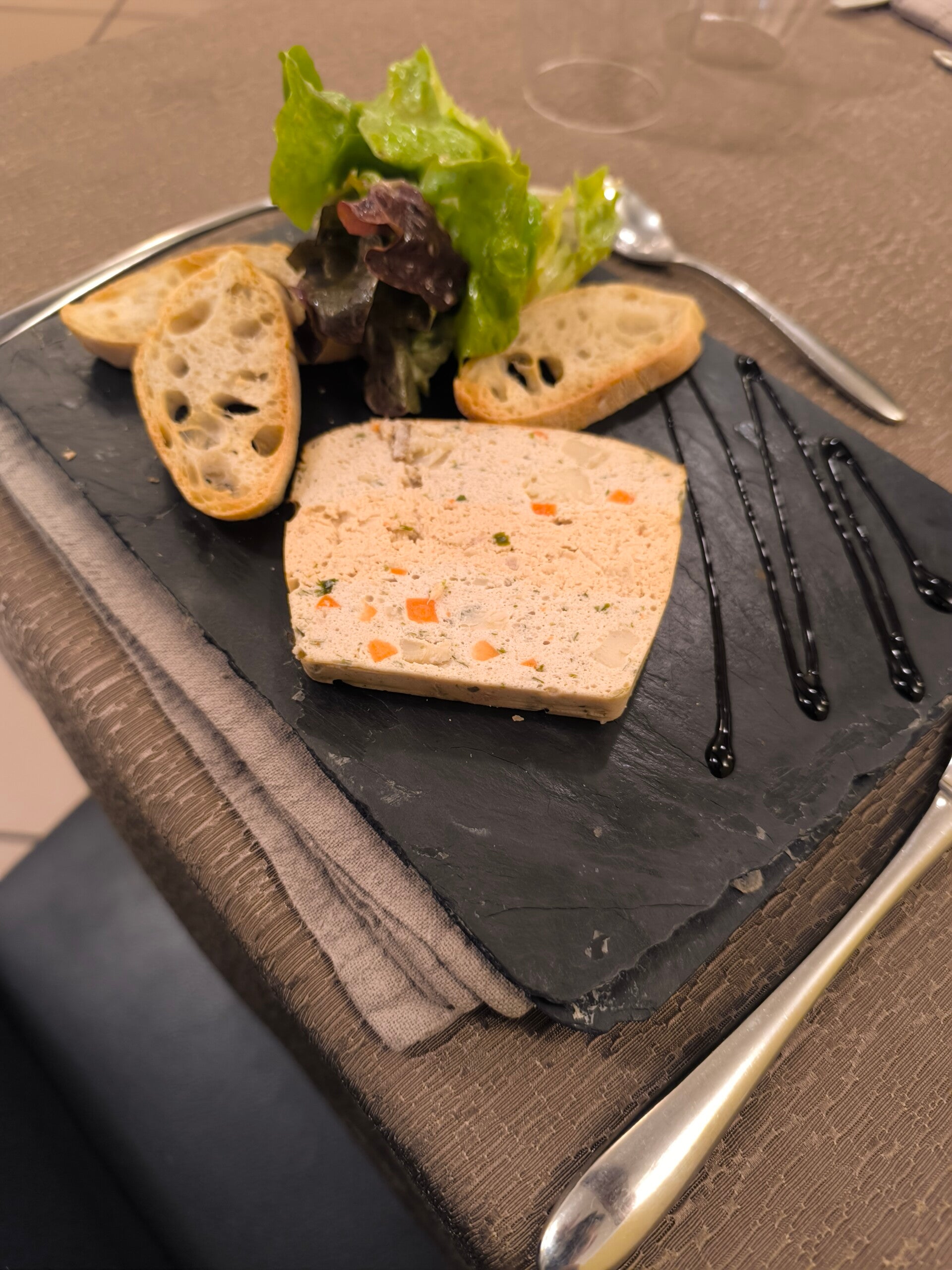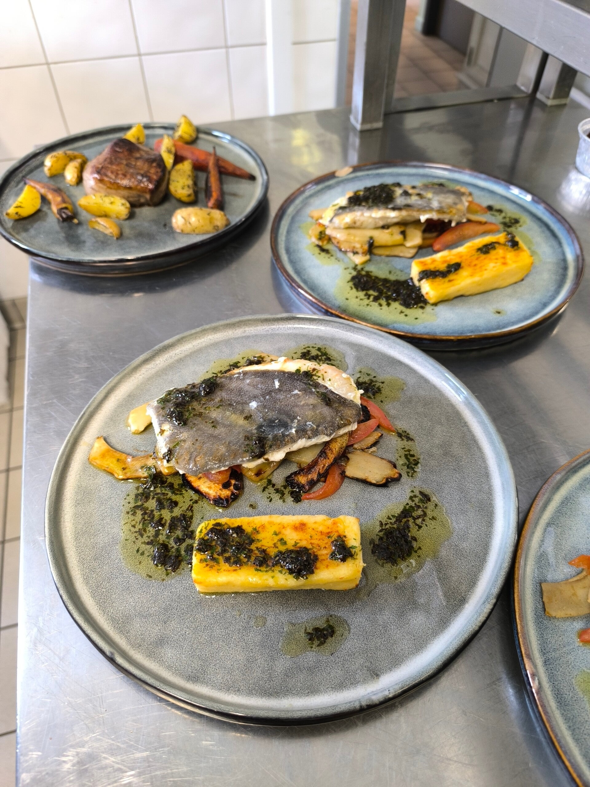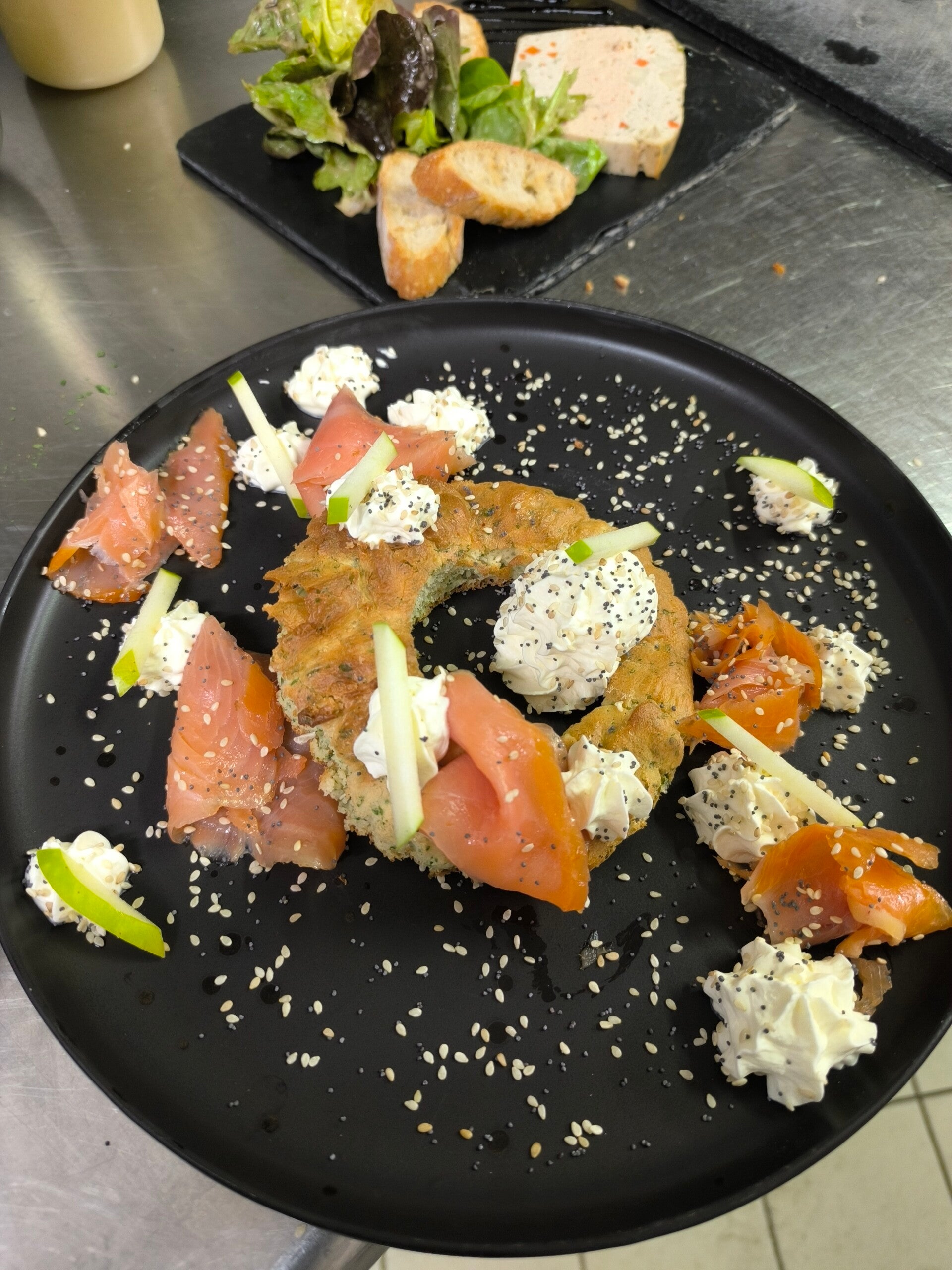 Laissez-vous tenter par un aperçu de nos plats signature. Découvrez le marbré de mousse de poisson, l'oeuf parfait, le saumon en blinis et l'escalope de foie gras poêlée. Chaque plat est préparé avec soin et présenté avec élégance, reflétant notre engagement envers la qualité et le goût.