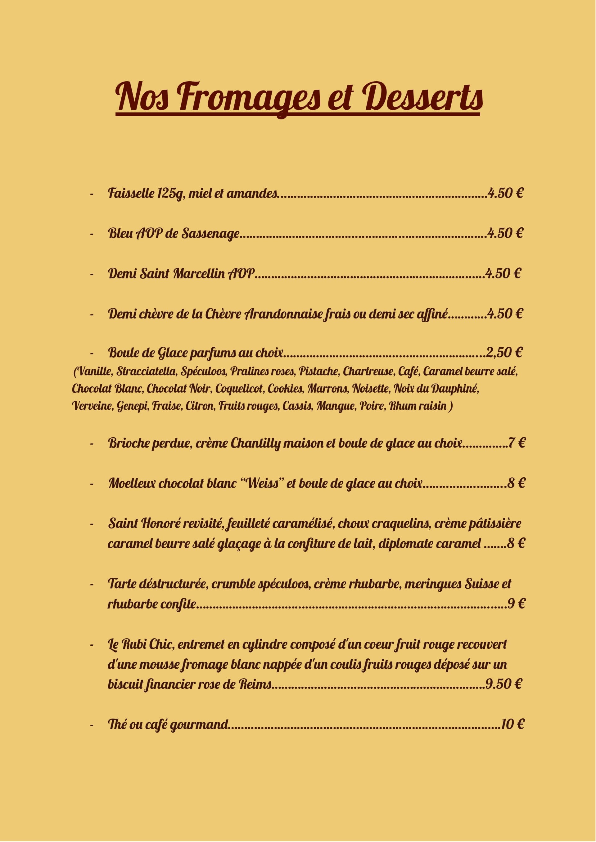 Un fromage AOP ou une note sucrée pour finir votre repas...